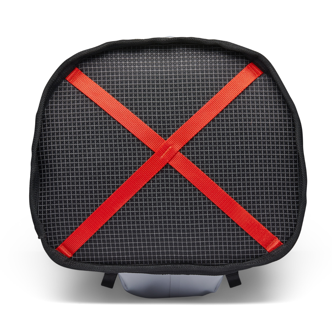 - Roll-top closure with over-the-top compression strap